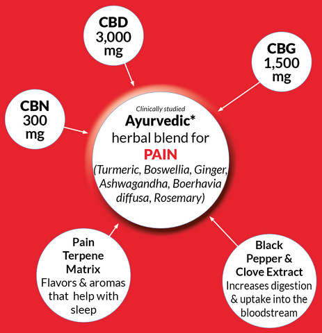 - Ayurvedic Pain Matrix: (Turmeric, Boswellia Serrata, Ginger, Ashwagandha, Boerhavia Diffusa)