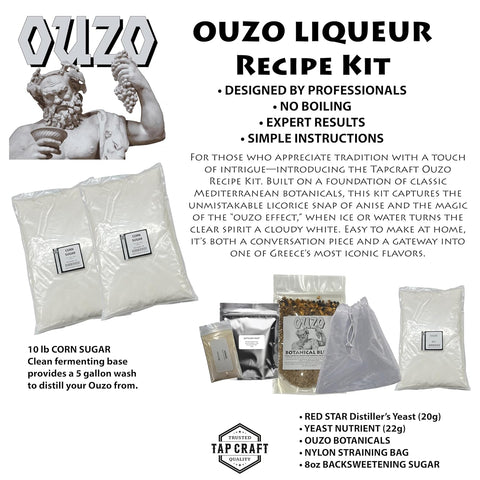 - Complete ouzo recipe kit designed to produce a 5-gallon fermentable sugar wash