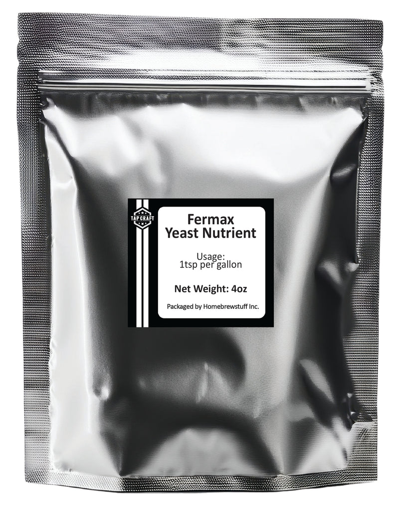 Fermax Yeast Nutrient is a premium nutrient contains diammonium phosphate, dipotassium phosphate, magnesium sulfate and autolyzed yeast. Great for all beer and winemaking. Use 1 tsp per gallon in last 10 minutes of boil. Yeast nutrient is critical for vigorous and complete fermentations that result in the greatest tasting beers or wines. The addition of yeast nutrient creates a healthier yeast population and improves fermentation behavior. A strong yeast population dramatically enhances the flavor and character of all beers and wines. Yeast nutrient does not contain yeast which must be added separately.
